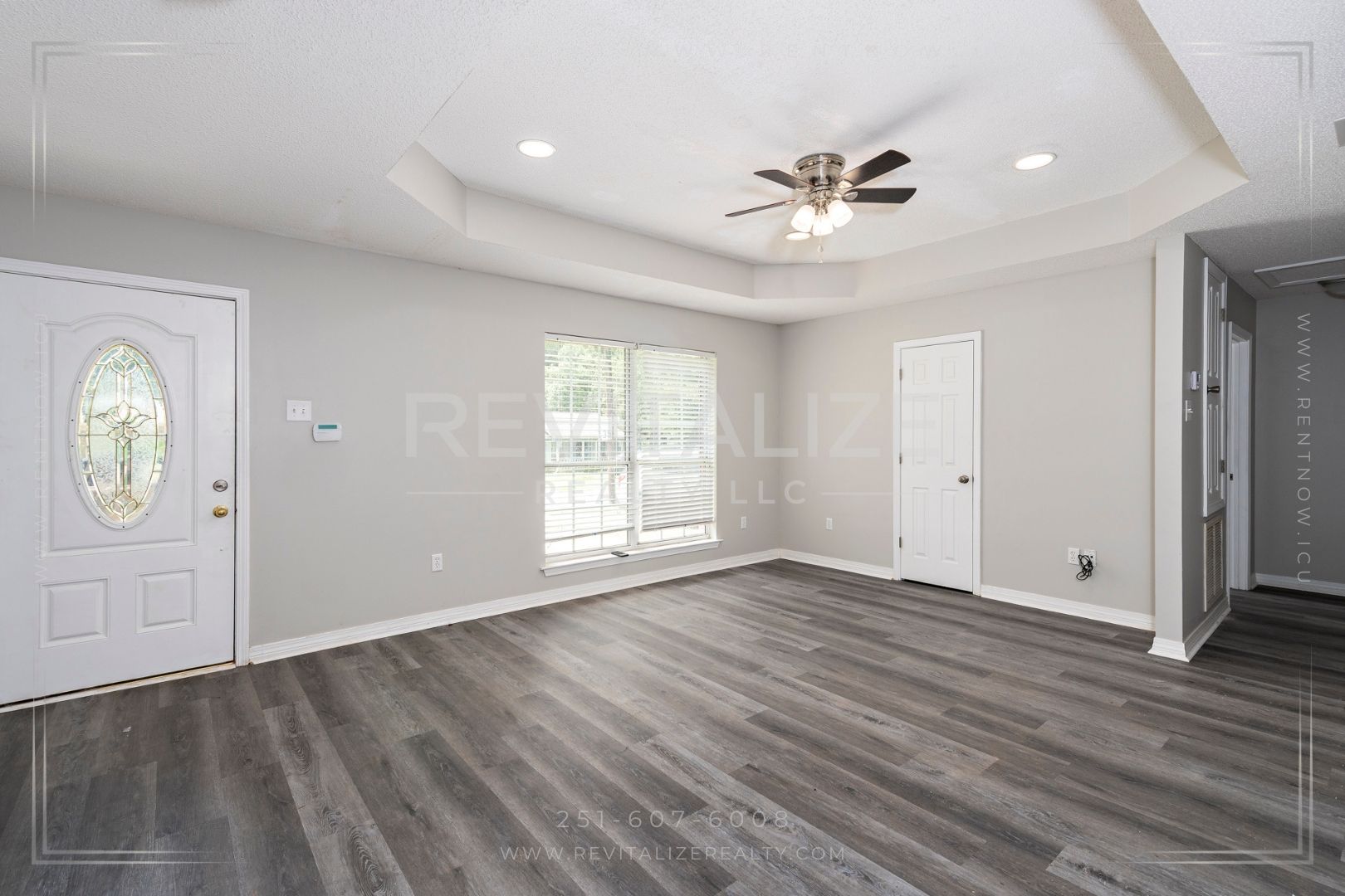 Welcome to this newly renovated 3-bedroom, 2-bathroom home located in the McVoy neighborhood just off of Dauphin Island Parkway! This property boasts a brick exterior that exudes a timeless appeal. Inside, you'll find newly installed luxury vinyl plank flooring, adding a clean and modern look to the space. The home is equipped with essential amenities for your convenience, including a dishwasher, refrigerator, and electric range in the kitchen. The vent hood ensures a well-ventilated cooking space. For your laundry needs, the house provides washer and dryer hook-ups and an in-unit laundry area. The house is also equipped with central heating and air, with ceiling fans for those warmer days. This home perfectly combines functionality and style, making it a great place to call home.