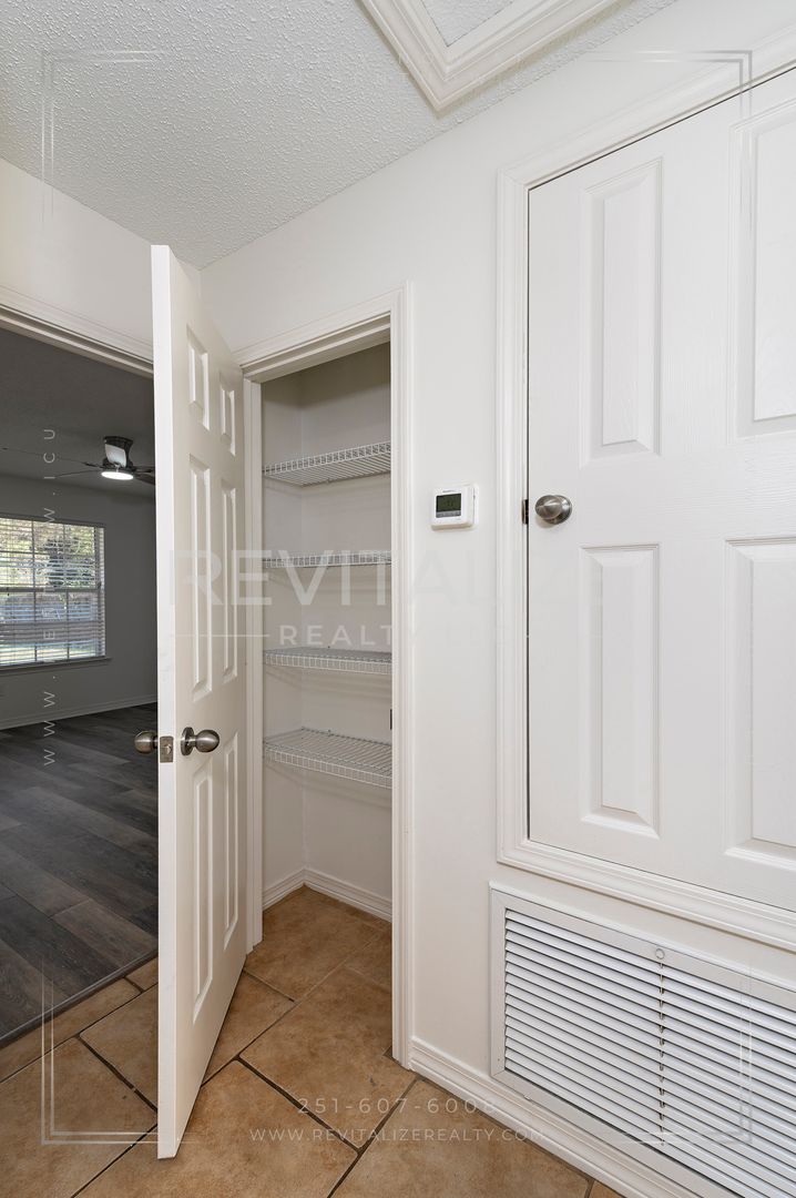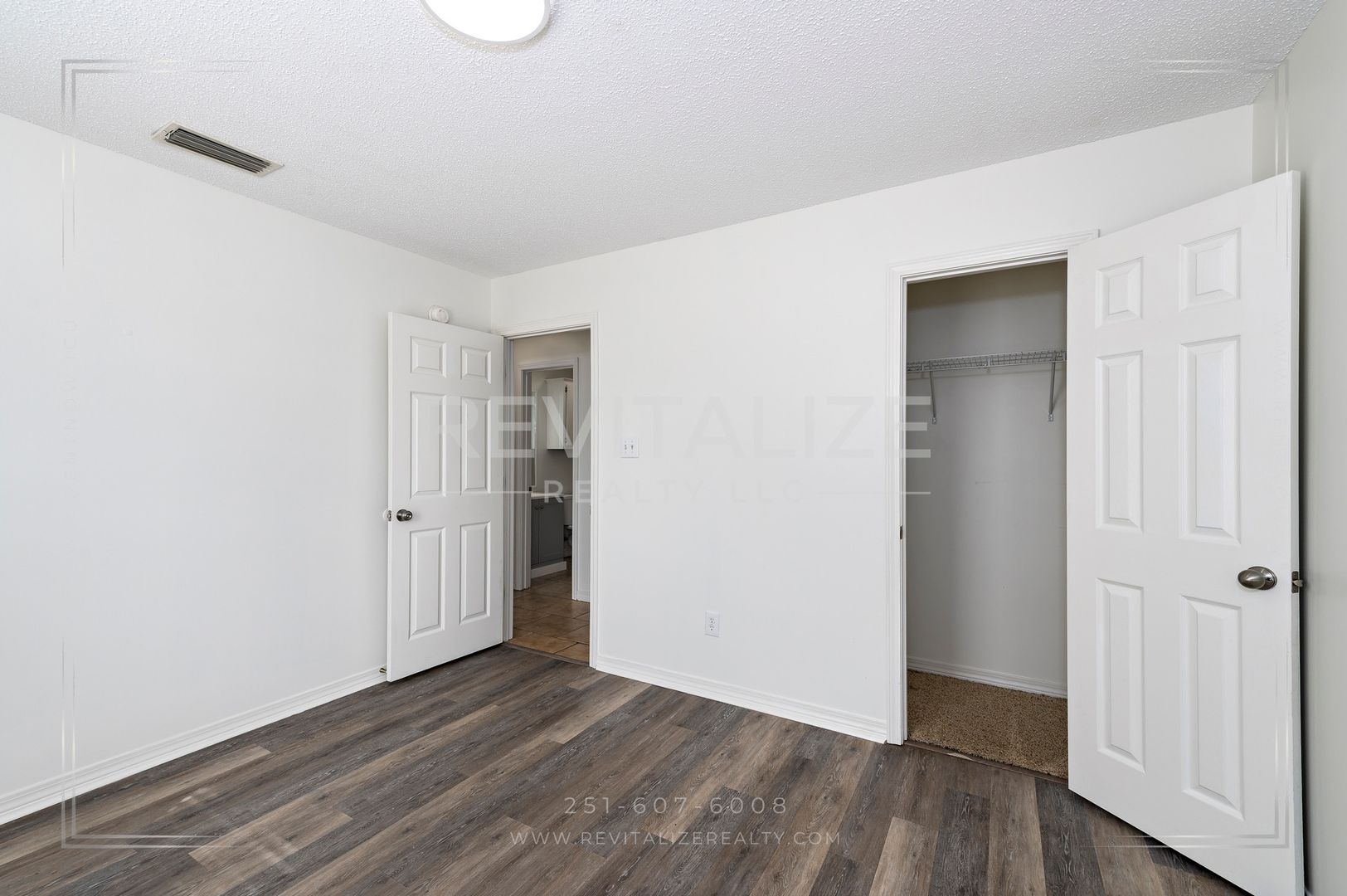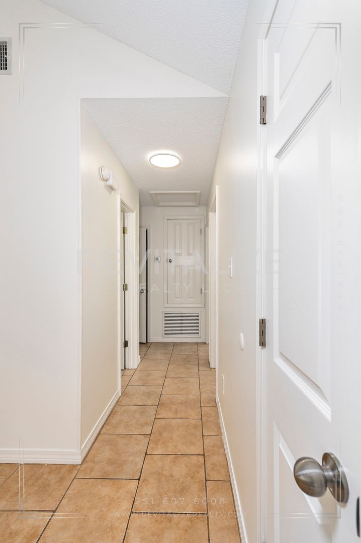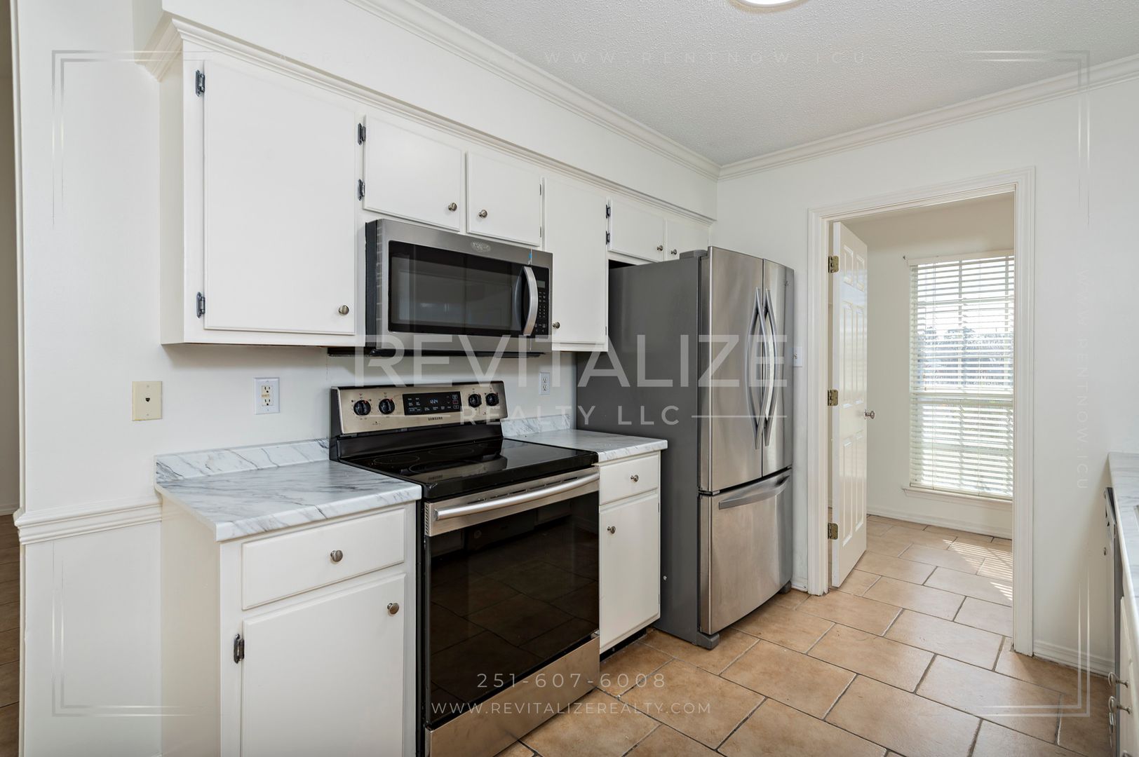 Welcome to this charming 3-bedroom, 2-bathroom brick home located in West Mobile. Inside, you'll be captivated by the vaulted ceiling in the living room and the feature fireplace. The flooring is a mix of tile and luxury vinyl plank flooring throughout. A charming bay window that lets in plenty of natural light in the kitchen and dining area. The kitchen boasts a range of stainless steel appliances, including a refrigerator, dishwasher, electric range, and microwave, with plenty of cabinet and countertop space. You'll find washer and dryer hook-ups with a gas water heater in a dedicated utility room. The home is also fitted with window treatments and ceiling fans for added comfort. The double-wide paved driveway provides ample space for vehicles. The home also features a front porch and back patio, perfect for outdoor relaxation, and a storage shed for additional space. The fenced yard ensures privacy. This home truly marries functionality with style, making it a perfect choice for those seeking a comfortable and modern living space in a quiet place.