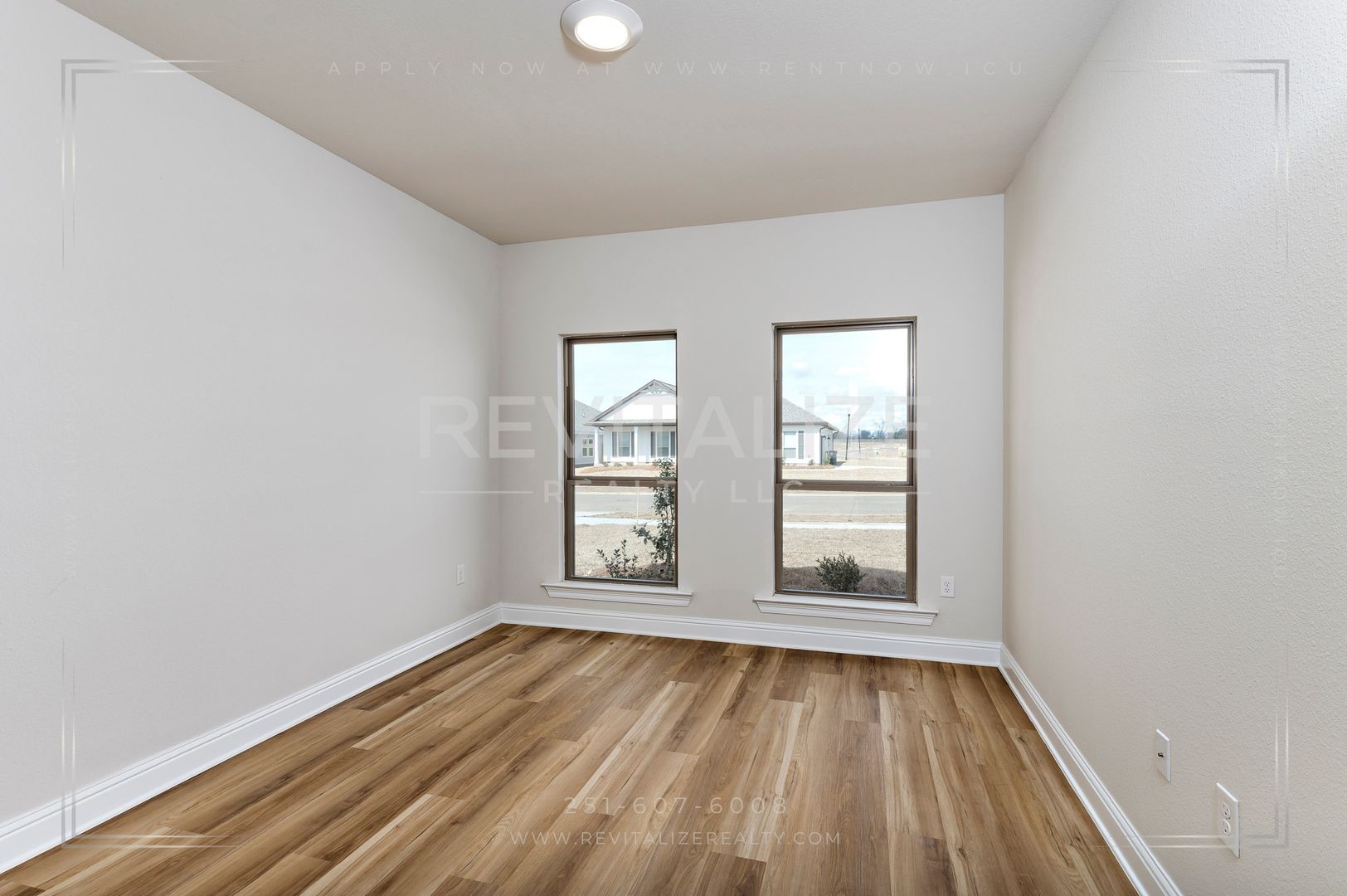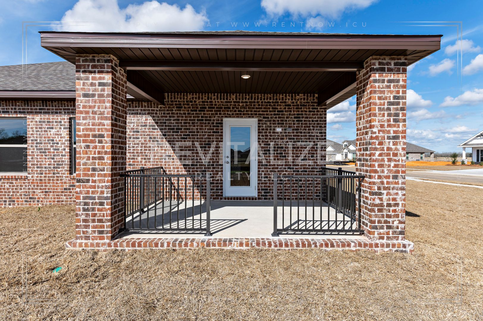 Be the first to live in this beautifully designed new construction home in the sought-after Harvest Green East community. Offering 4 bedrooms, 2.5 bathrooms, and a versatile flex room that could double as a 5th bedroom, this home blends modern style with everyday functionality in a spacious, open layout. The heart of the home features a bright, open-concept living and dining area that flows seamlessly into a well-appointed kitchen with quartz countertops, a walk-in pantry, and stainless steel appliances, including an electric range, microwave, and dishwasher. The split floor plan provides extra privacy for the primary suite, which includes a walk-in closet, double vanity, soaking tub, tiled shower, and private commode. Luxury vinyl plank flooring runs throughout the home for a clean, contemporary feel. The home features convenient electronic keypad entry and a dedicated in-unit laundry room with washer and dryer hookups. An attached double garage and paved driveway provide easy parking and storage. Enjoy outdoor living with a covered front porch and rear covered patio, all situated on a spacious corner lot with a classic brick exterior. Built with energy-efficient construction, the home also features a versatile flex room that can serve as a home office, gym, playroom, or fifth bedroom.