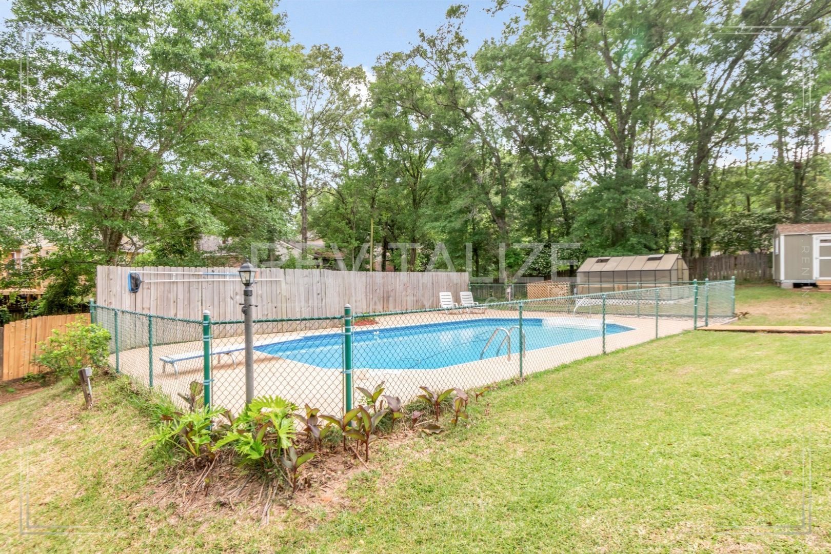 Step outside to relax on the covered front and back porches or entertain in the spacious fenced backyard. A wooden walkway leads to an in‑ground swimming pool with a diving board and deck chairs for you to get that perfect suntan. For your personal safety pool includes, stainless steel handrails and ladder, making it easier to get in and out of the water and to help keep that crystal clear water there is cleaning supplies and vacuum. Outdoor lighting and outdoor storage shed supports everyday needs.