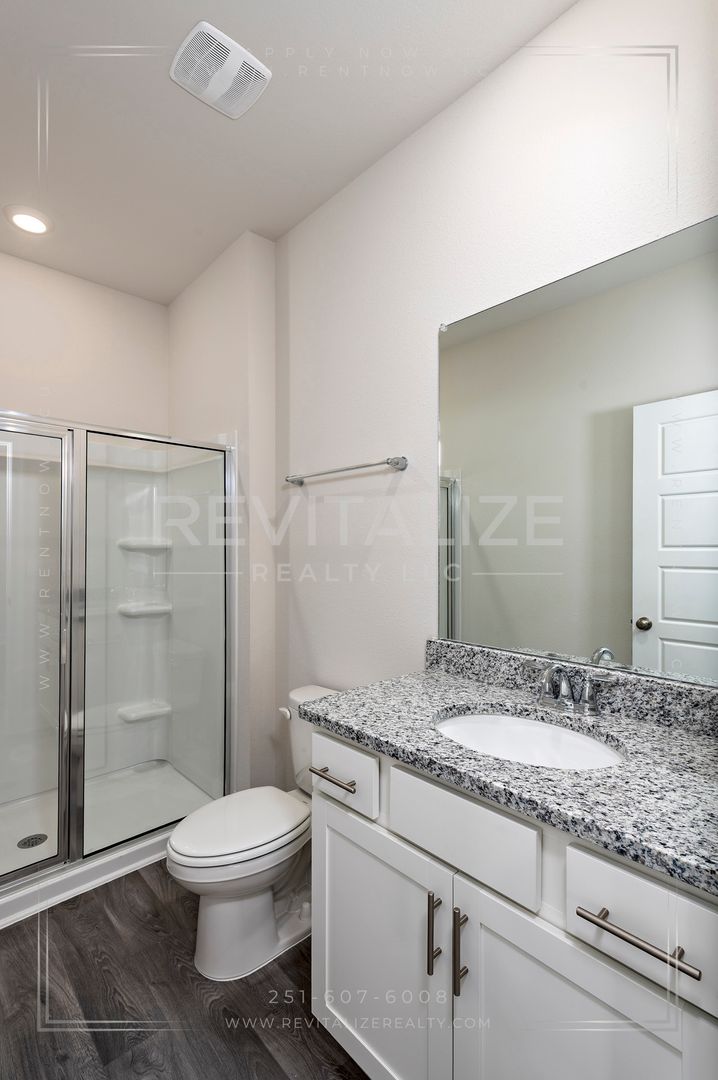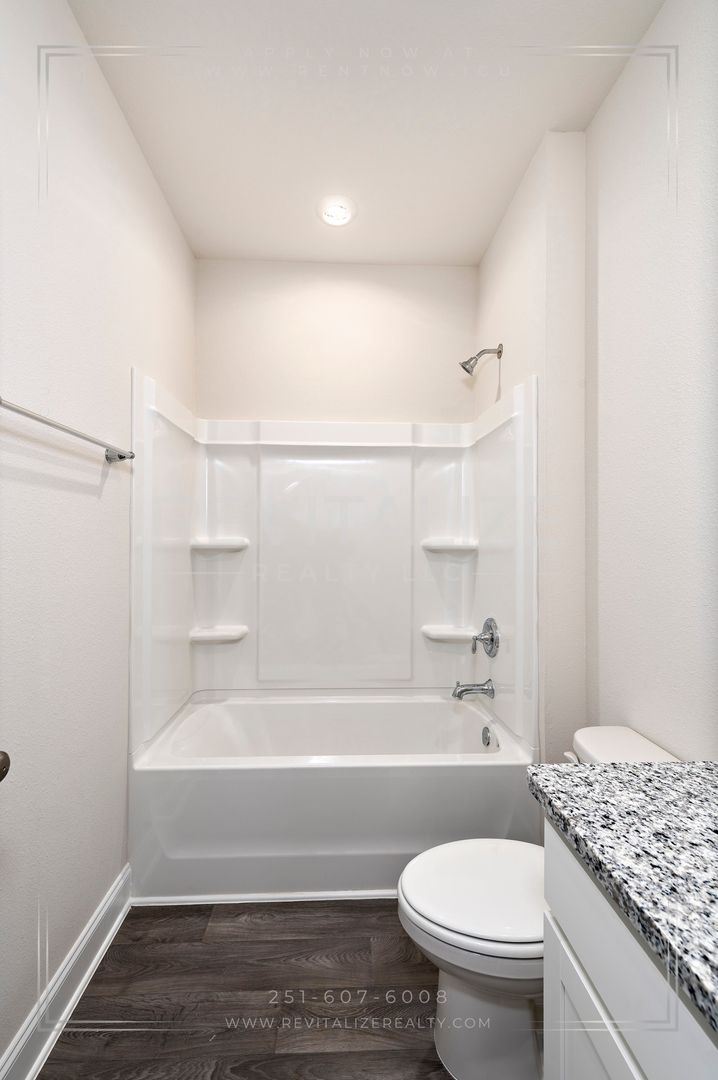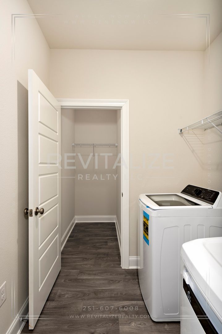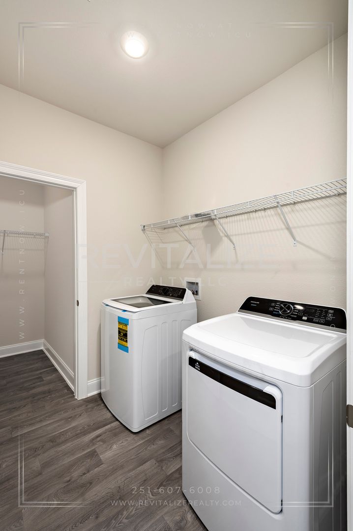Welcome to this new construction 4-bedroom, 2-bathroom home located in the desirable Revere at Independence in Spanish Fort. This modern craftsman cottage-style home is the Camilla floorplan, which offers a great open concept main living area and is built to Golf Fortified standards.. The home features a fenced backyard, 9-foot ceilings, luxury vinyl plank flooring, and granite counertops throughout. The kitchen is outfitted with stainless steel appliances, which include a refrigerator, dishwasher, gas range, and microwave; and overlooks the dining area and great room, which leads out to the deck. Across from the kitchen is a separate, dedicated laundry space with a washer and dryer set provided. The split bedroom plan ensures just the right amount of privacy. Enter the primary suite from the living room and find a walk-in closet and an ensuite bathroom with a walk-in shower. The other 3 bedrooms are located on the front side of the home, with the second bathroom featureing a linen closet between the first 2 bedrooms. The paved driveway leads to an attached single-car garage, providing additional parking and storage space. Front door features an electronic keypad to operate the lock. As a bonus, there are 2 community pools which make great places to relax and cool off during the hot summer months. This home is not just a dwelling, but a lifestyle. Make it yours today!
