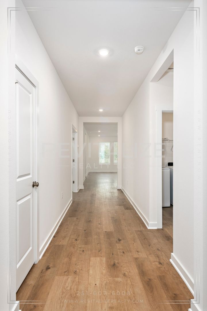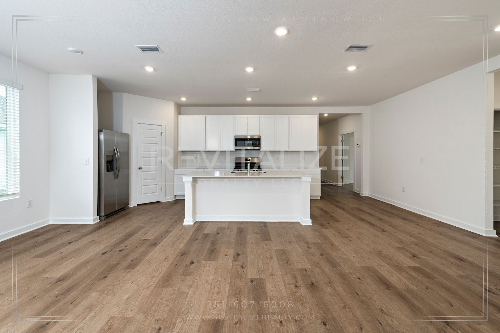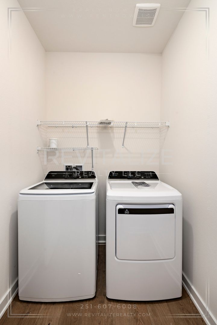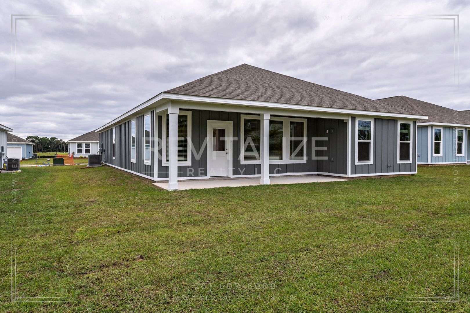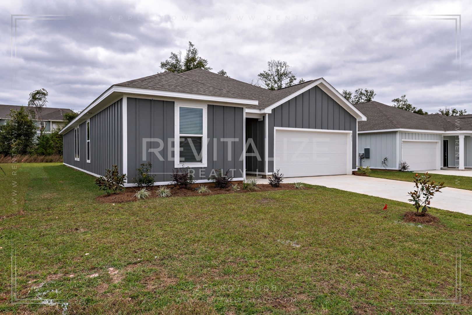 Welcome to your dream home in Foley, AL! This newly constructed house boasts four spacious bedrooms and three full bathrooms, with a versatile flex room, offering ample space in a desirable new community. The open-concept kitchen is a chef's delight, equipped with white shaker cabinets, a stainless steel refrigerator, dishwasher, microwave, and stove. The kitchen island provides extra counter space (made of quartz!) for meal preparation, and a walk-in pantry ensures plenty of storage. The house also features a dedicated laundry room with a washer and dryer provided for your convenience. The master suite is a true retreat, complete with a walk-in closet, double vanity, and a beautifully tiled shower. The flooring is a mix of luxury vinyl plank throughout the common areas and carpet in the bedrooms, providing both style and comfort. The house also offers central heating and air conditioning for year-round comfort. An attached double garage and paved driveway provide ample parking. Enjoy the outdoors from a spacious covered back porch. The 4-side Hardie exterior ensures timeless curb appeal and long-lasting durability. Be the first to enjoy quiet living in this beautiful new build on a 6,969.6 sqft lot!