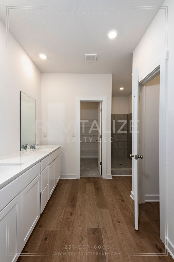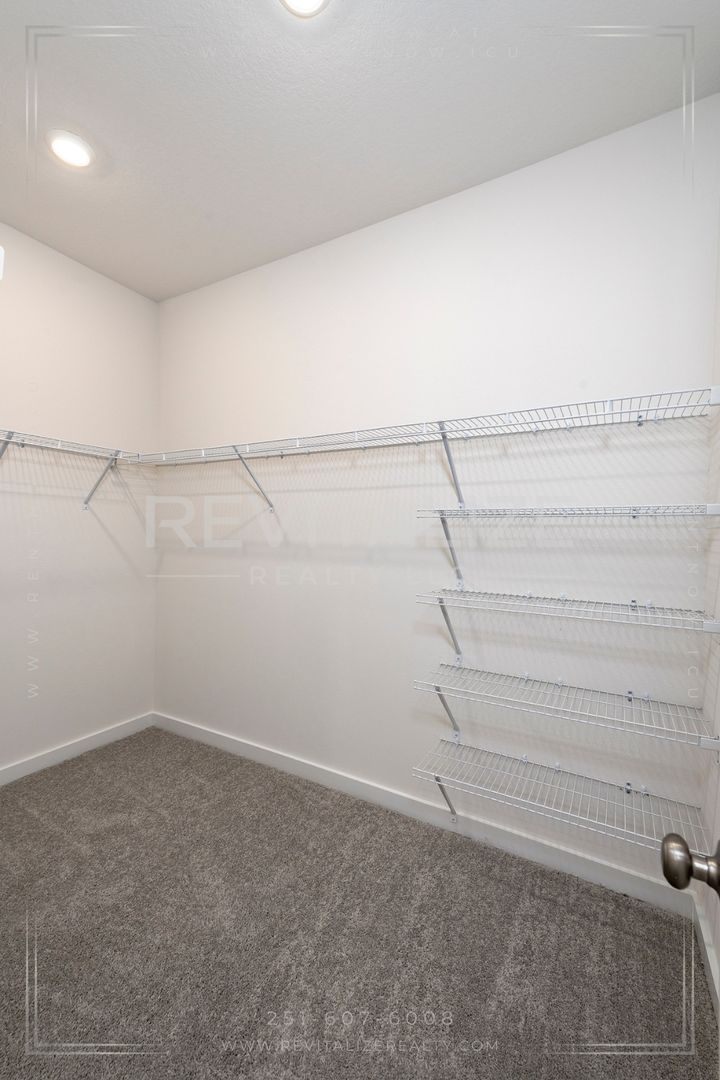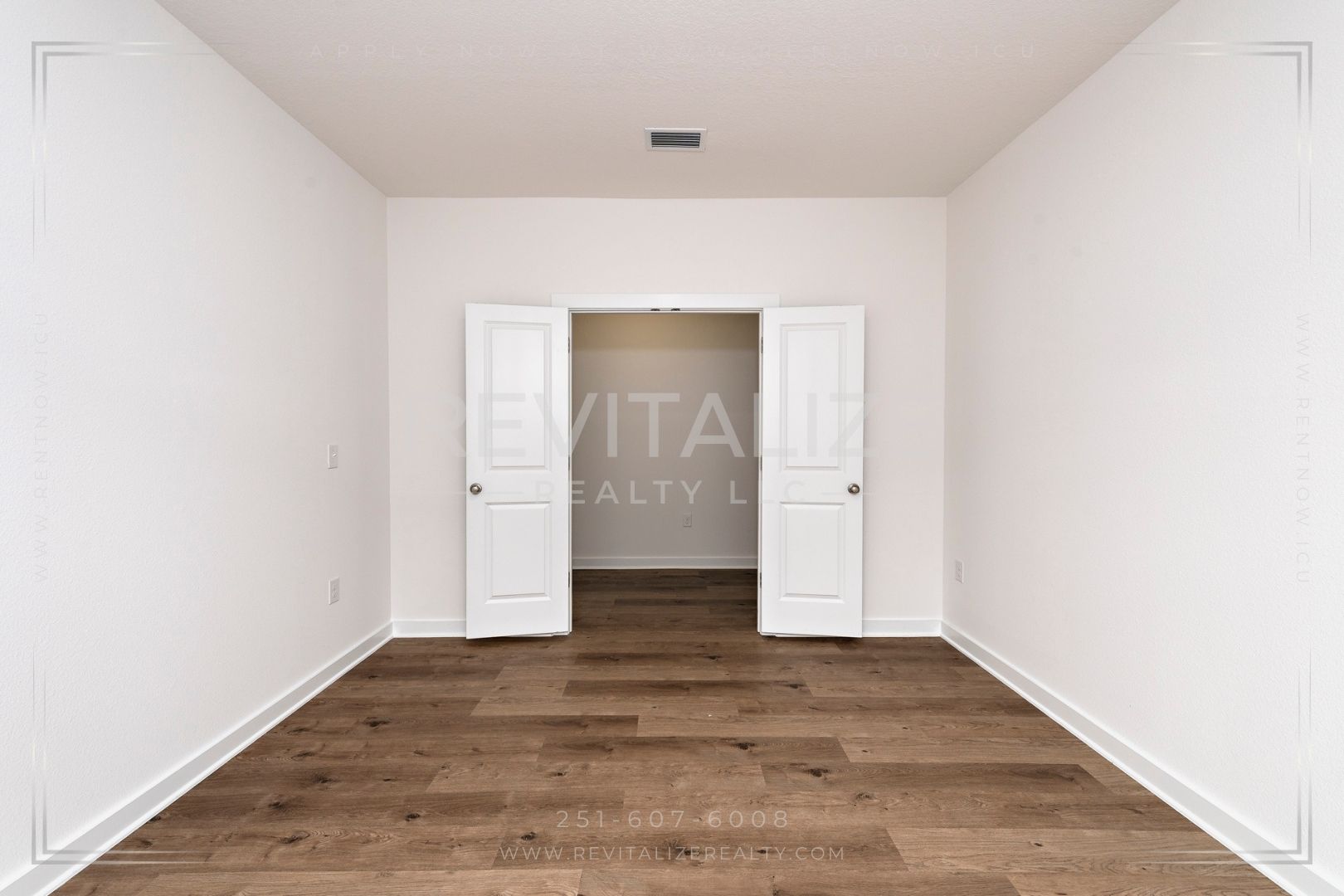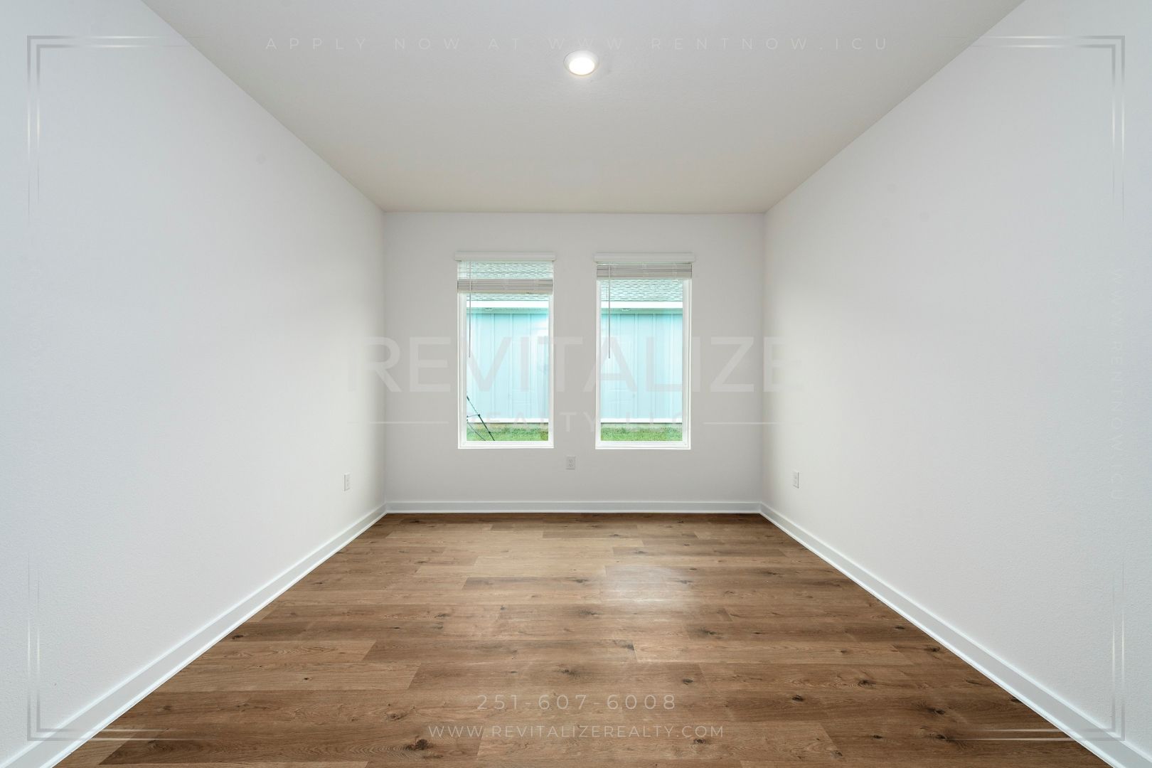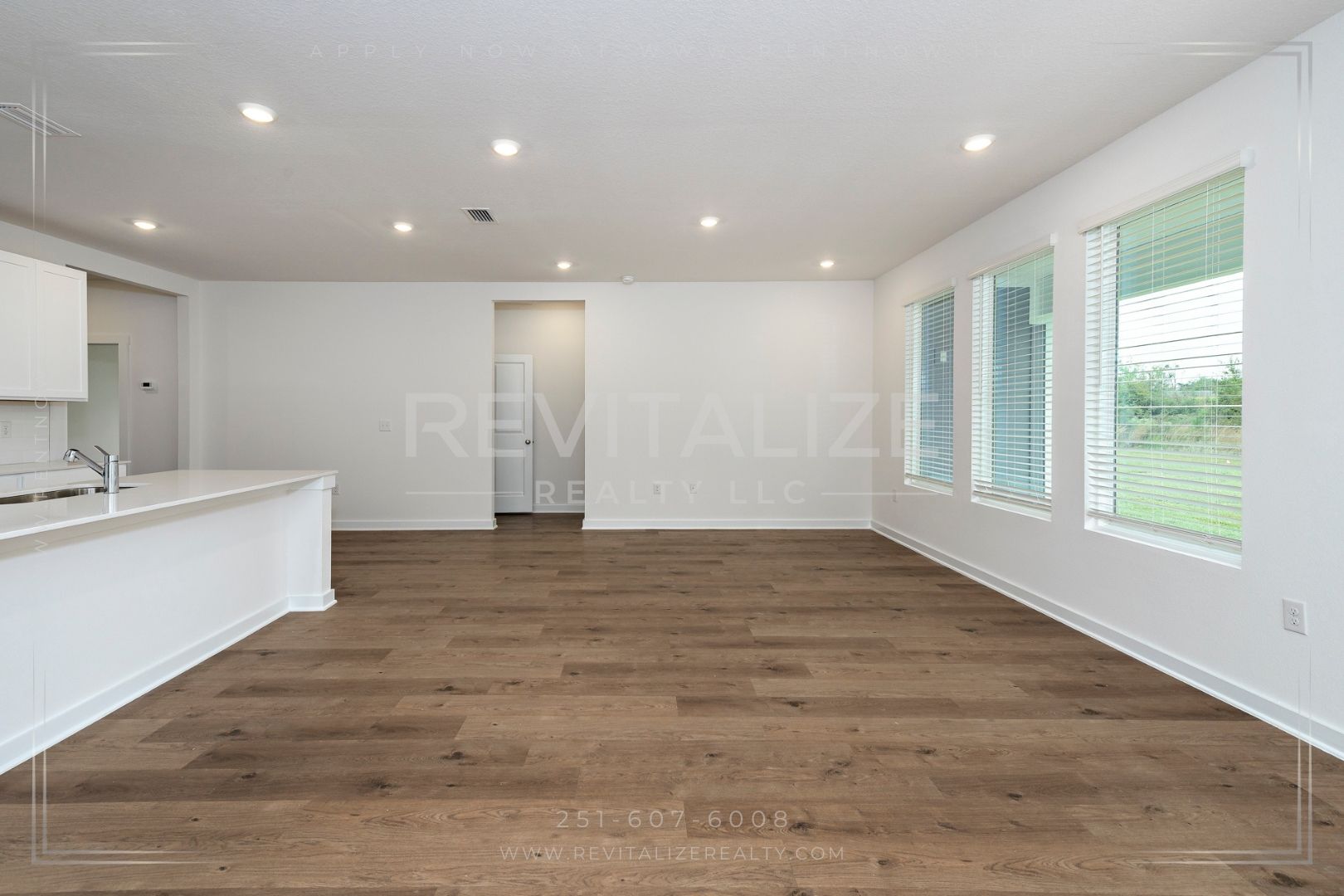 Welcome to your dream home in Foley, AL! This newly constructed house boasts four spacious bedrooms and three full bathrooms, with a versatile flex room, offering ample space in a desirable new community. The open-concept kitchen is a chef's delight, equipped with white shaker cabinets, a stainless steel refrigerator, dishwasher, microwave, and stove. The kitchen island provides extra counter space (made of quartz!) for meal preparation, and a walk-in pantry ensures plenty of storage. The house also features a dedicated laundry room with a washer and dryer provided for your convenience. The master suite is a true retreat, complete with a walk-in closet, double vanity, and a beautifully tiled shower. The flooring is a mix of luxury vinyl plank throughout the common areas and carpet in the bedrooms, providing both style and comfort. The house also offers central heating and air conditioning for year-round comfort. An attached double garage and paved driveway provide ample parking. Enjoy the outdoors from a spacious covered back porch. The 4-side Hardie exterior ensures timeless curb appeal and long-lasting durability. Be the first to enjoy quiet living in this beautiful new build on a 6,969.6 sqft lot!