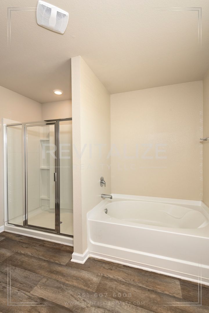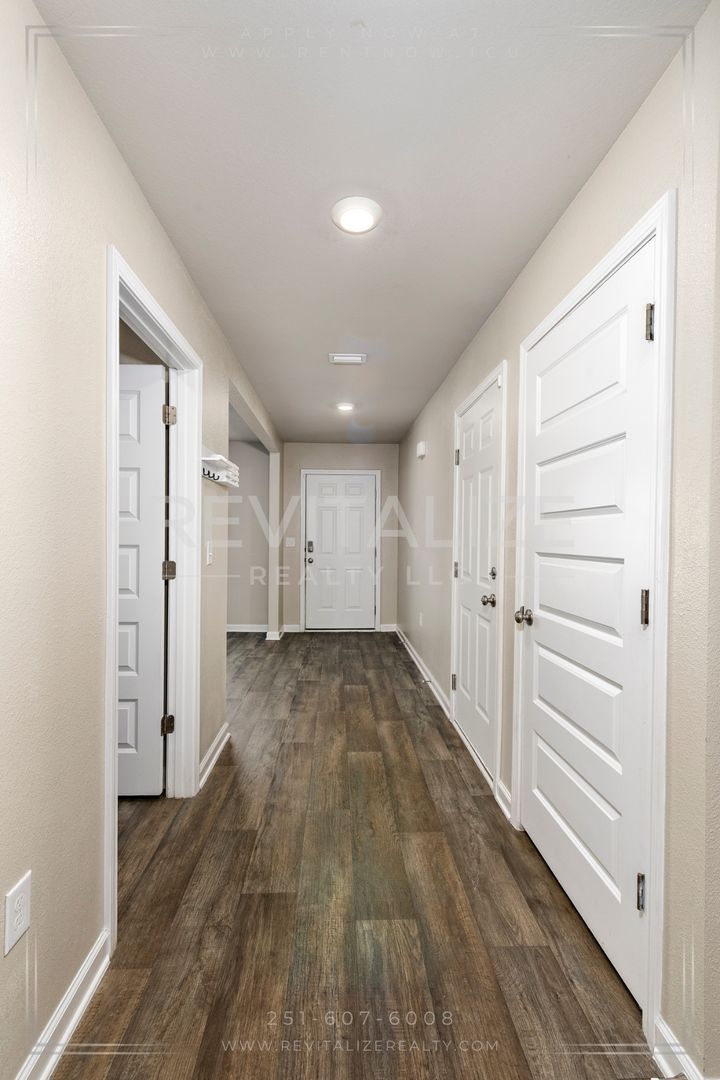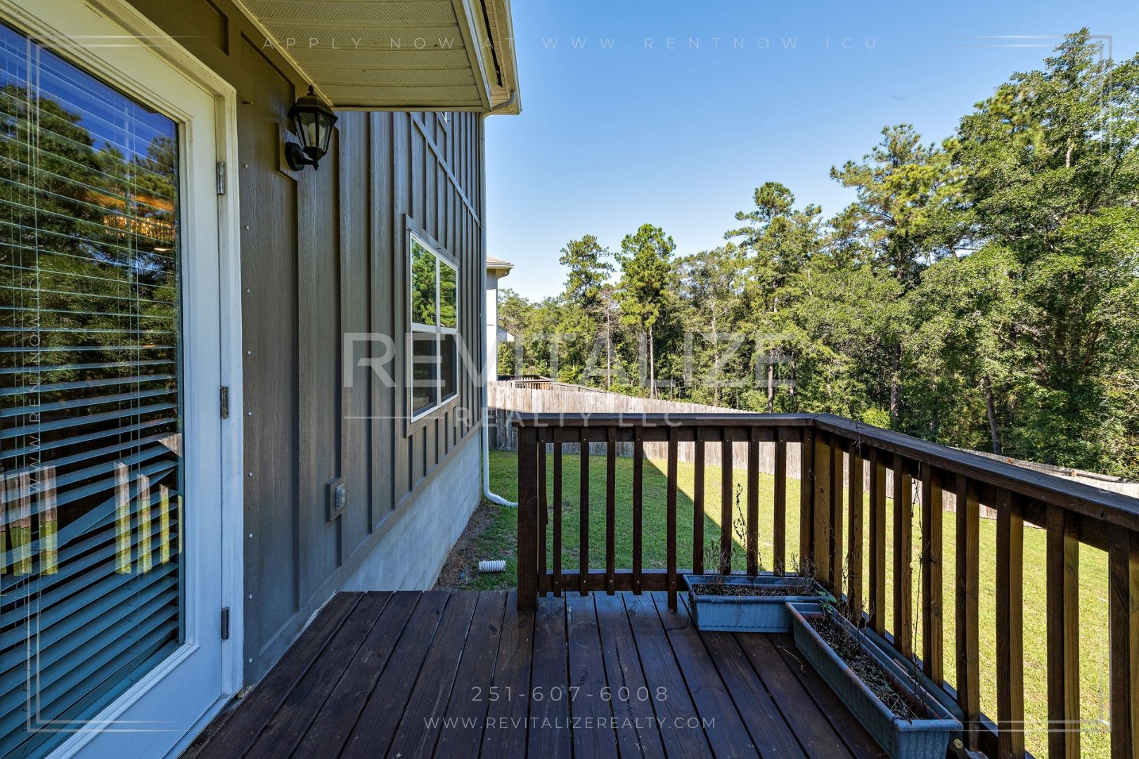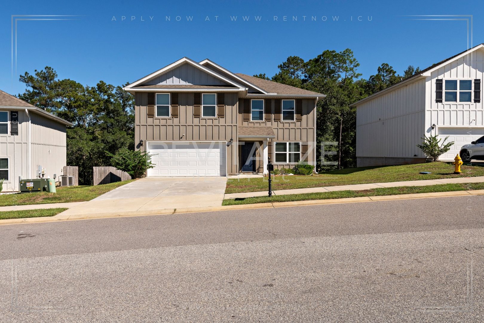 Welcome to your dream home in the prime location of Spanish Fort. This stunning 2-story house boasts 4 spacious bedrooms and 2.5 bathrooms. The master suite features a walk-in closet and private bathroom, including a double vanity, stand-alone shower, and bathtub for your relaxation. The kitchen is equipped with a dishwasher, refrigerator, range, and granite countertops. The pantry provides ample storage for your culinary needs. You'll find the washer and dryer are conveniently located in a separate laundry room upstairs. The house also features a mix of luxury vinyl plank and carpet flooring, adding a touch of elegance and comfort to the space. The attached double garage and paved driveway for off-street parking ensure plenty of room for your vehicles. You'll find in the garage is an EV (electric vehicle) charger for your convenience! There is also a back deck, perfect for some outdoor relaxation. The community amenities include a pool and a playground, and a beautiful lake, offering a serene view. The house is secured with ADT Security, with service transferable to the Tenant, for your peace of mind. This house is a perfect blend of comfort and modern luxuries.