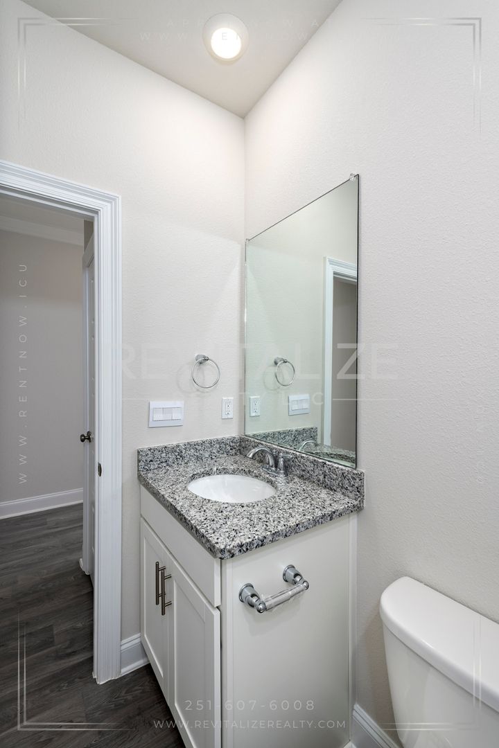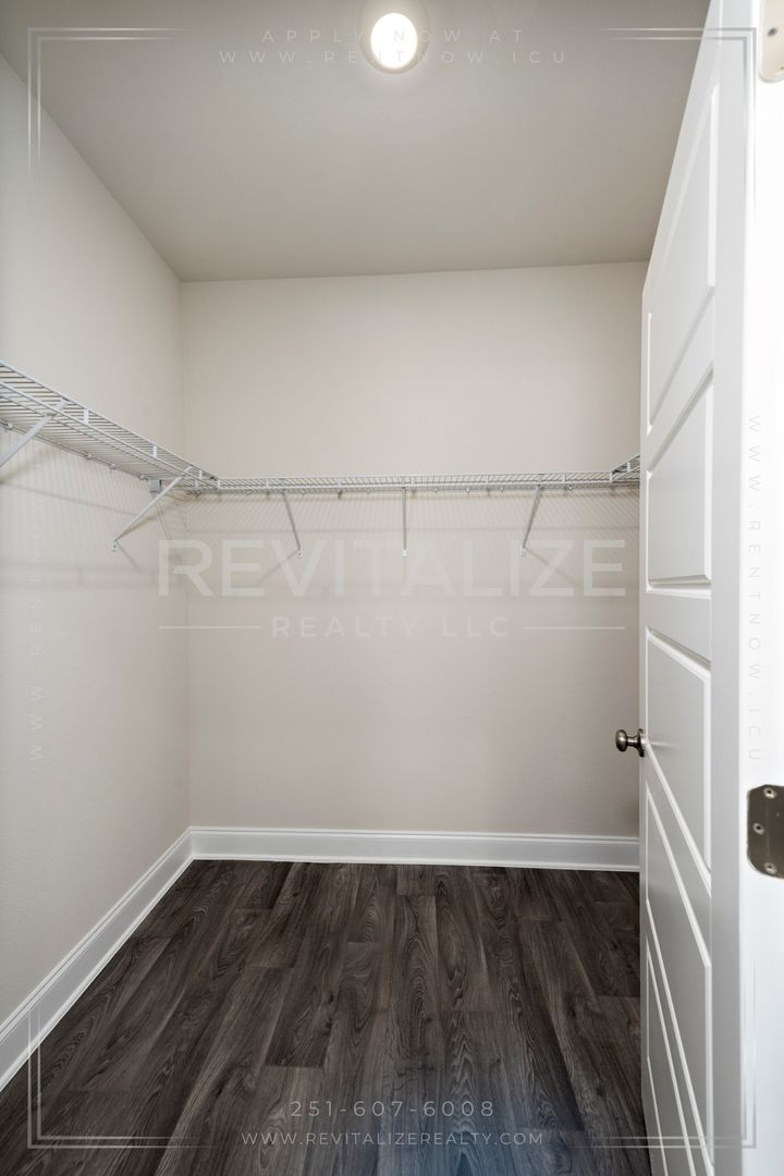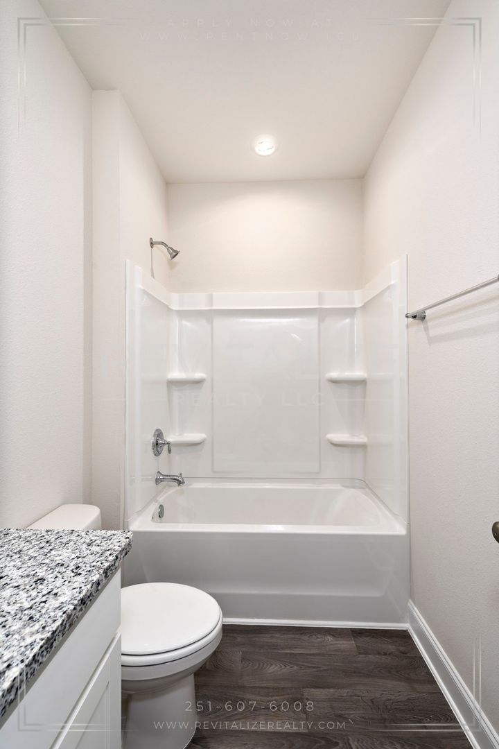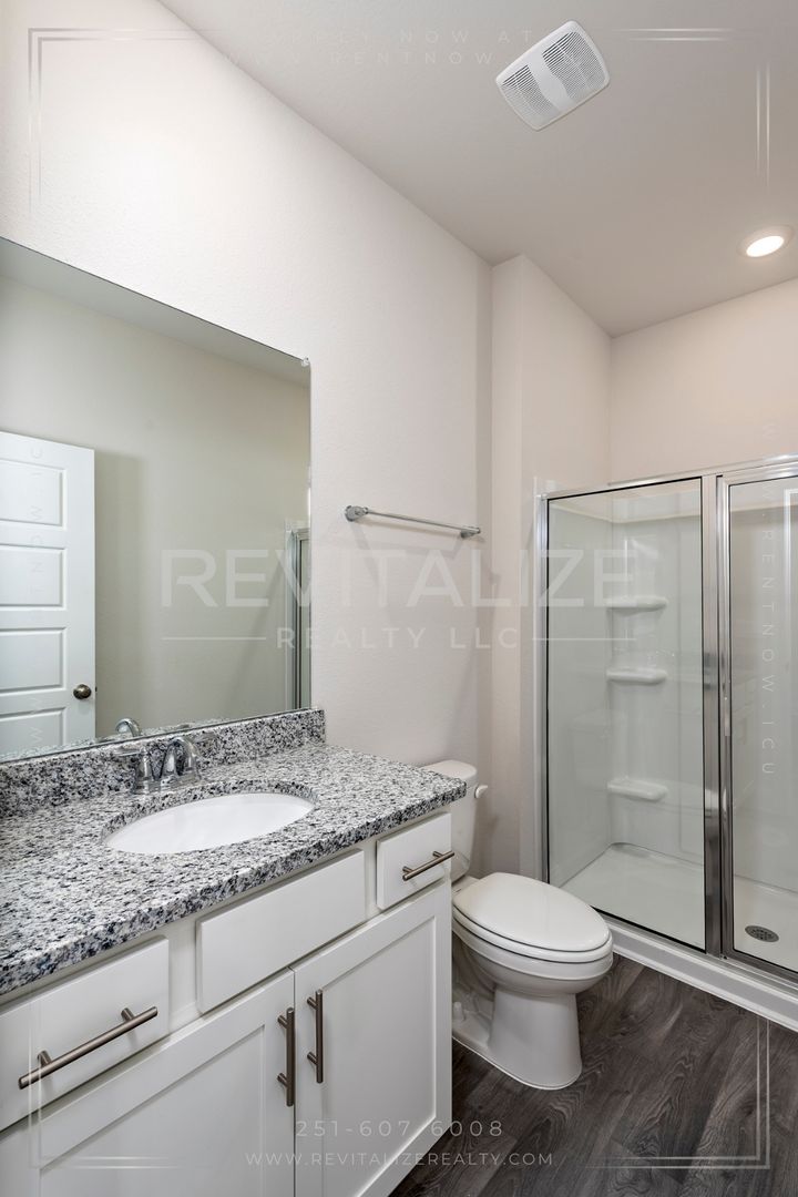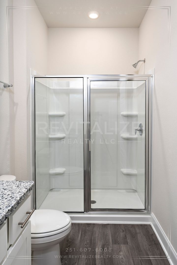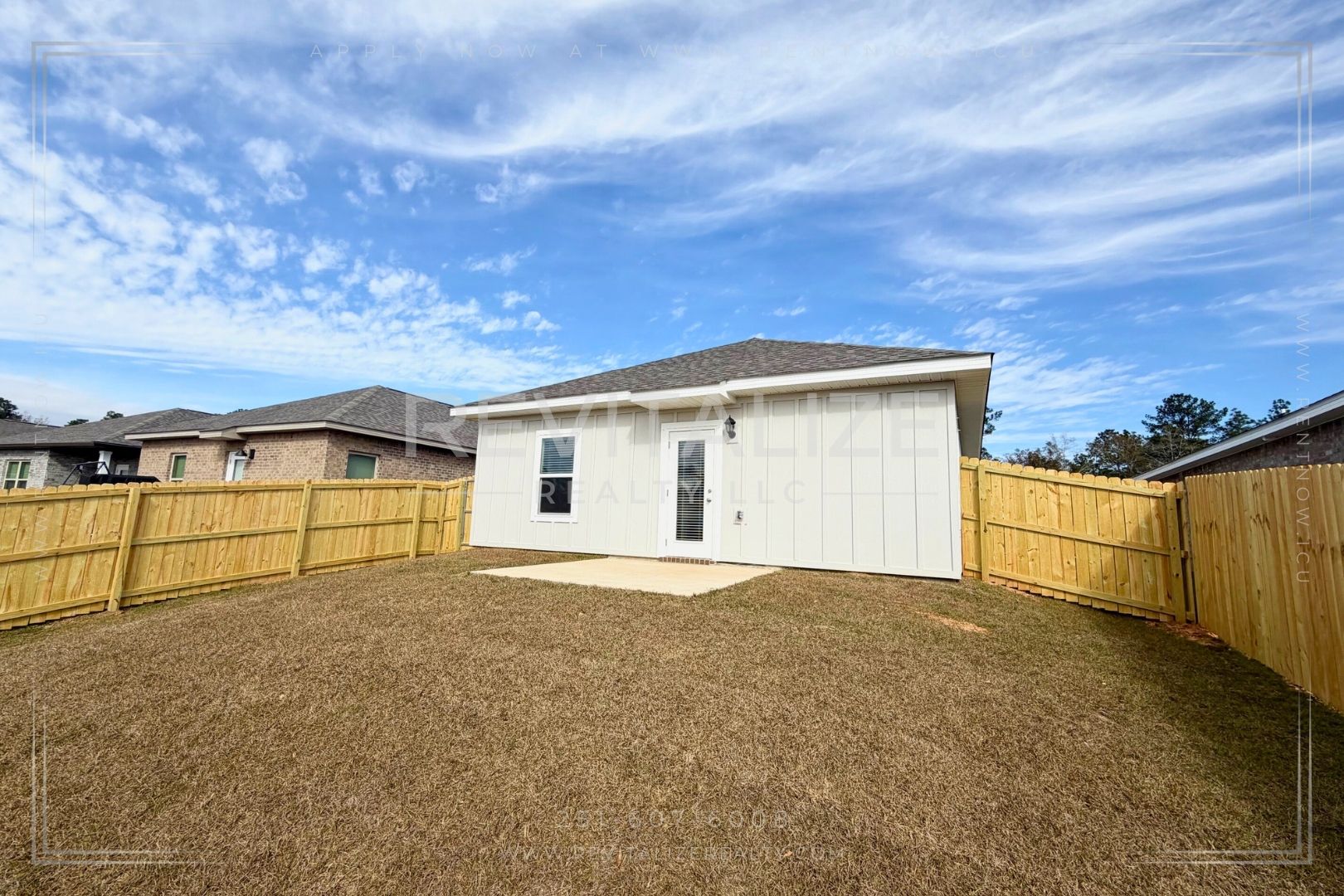 Welcome to this new construction 4-bedroom, 2-bathroom home located in the desirable Revere at Independence in Spanish Fort. This modern craftsman cottage-style home is the Camilla floorplan, which offers a great open concept main living area and is built to Golf Fortified standards.. The home features a fenced backyard, 9-foot ceilings, luxury vinyl plank flooring, and granite counertops throughout. The kitchen is outfitted with stainless steel appliances, which include a refrigerator, dishwasher, gas range, and microwave; and overlooks the dining area and great room, which leads out to the outdoor patio. Across from the kitchen is a separate, dedicated laundry space with a washer and dryer set provided. The split bedroom plan ensures just the right amount of privacy. Enter the primary suite from the living room and find a walk-in closet and an ensuite bathroom with a walk-in shower. The other 3 bedrooms are located on the front side of the home, with the second bathroom featureing a linen closet between the first 2 bedrooms. The paved driveway leads to an attached single-car garage, providing additional parking and storage space. Front door features an electronic keypad to operate the lock. As a bonus, there are 2 community pools which make great places to relax and cool off during the hot summer months. This home is not just a dwelling, but a lifestyle. Make it yours today!
